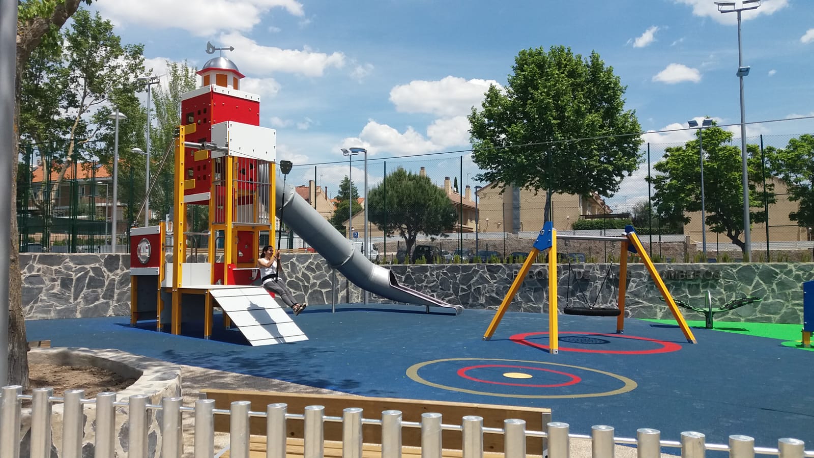 Parque infantil “Bomberos” en carretera de Villaviciosa, Boadilla del Monte, Madrid (proyecto 2018, fin obra 2019).